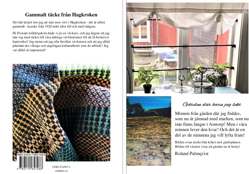 Detta är min tredje bok om min hemby Arntorp i Bohuslän - den här gången med fokus på gården Hagkroken där jag föddes. Det var när jag upptäckte att hela den gamla byn höll på att försvinna, - ätas upp av industrimark - som jag bestämde mig för att dokumentera minnen och berättelser från gården. Där fanns åtta gårdar och jordbruksfastigheter när jag bodde där - nu finns egentligen bara en gård kvar! Jag förstår inte riktigt hur man så här kan förstöra stora arealer av åkrar och ängar! Naturligtvis inser jag att man vill att staden ska utvecklas. Men behöver det ske på fin och historisk åkermark, och måste den ena gården efter den andra rivas och jämnas med marken?