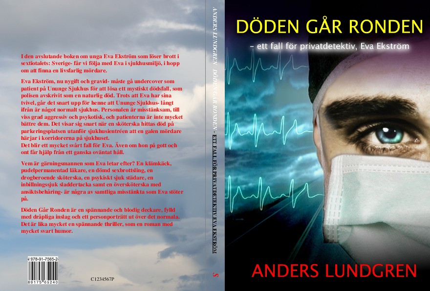 Döden går Ronden- ett fall för privatdetektiv, Eva Ekström! I den avslutande boken om unga Eva Ekström som löser brott i sextiotalets: Sverige- får vi följa med Eva i sjukhusmiljö, i hopp om att finna en livsfarlig mördare. Eva Ekström, nu nygift och gravid- måste gå undercover som patient på Ununge Sjukhus för att lösa ett mystiskt dödsfall, som polisen avskrivit som en naturlig död. Trots att Eva har sina tvivel, går det snart upp för henne att Ununge Sjukhus- långt ifrån är något normalt sjukhus. Personalen är misstänksam, till viss grad aggressiv och psykotisk, och patienterna är inte mycket bättre dem. Det visar sig snart när en sköterska hittas död på parkeringsplatsen utanför sjukhusinentréen att en galen mördare härjar i korridorerna på sjukhuset. Det blir ett mycket svårt fall för Eva. Även om hon på gott och ont får hjälp från ett ganska oväntat håll. Vem är gärningsmannen som Eva letar efter? En klämkäck, pudelpermanentad läkare, en dömd sexbrottsling, en drogberoende sköterska, en psykiskt sjuk städare, en inbillningssjuk sladdertacka samt en översköterska med ansiktsbehåring- är några av samtliga misstänkta som Eva stöter på. Döden Går Ronden är en spännande och blodig deckare, fylld med dråpliga inslag och ett personporträtt ut över det normala. Det är lika mycket en spännande thriller, som en roman med mycket svart humor.